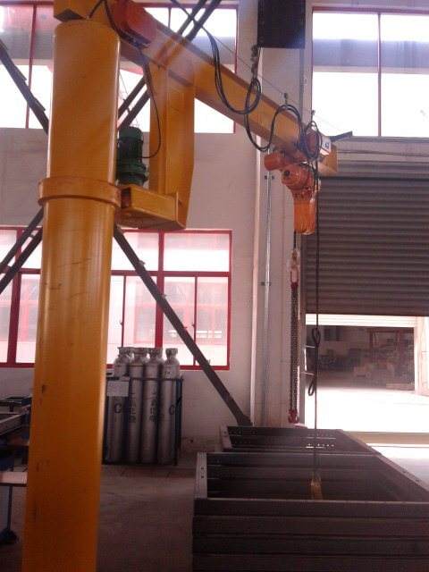 立柱式旋臂吊具有结构新颖、合理、简单、操作方便、回转灵活、作业空间大等优点,是节能高效的物料吊运设备,可广泛适用于厂矿、车间的生产线、装配线和 机床的上、下工作及仓库、码头等场合的重物吊运。定柱式旋臂吊根据其旋臂所使用型钢的不同可以分为:BZD型和BZD-JKBK型。